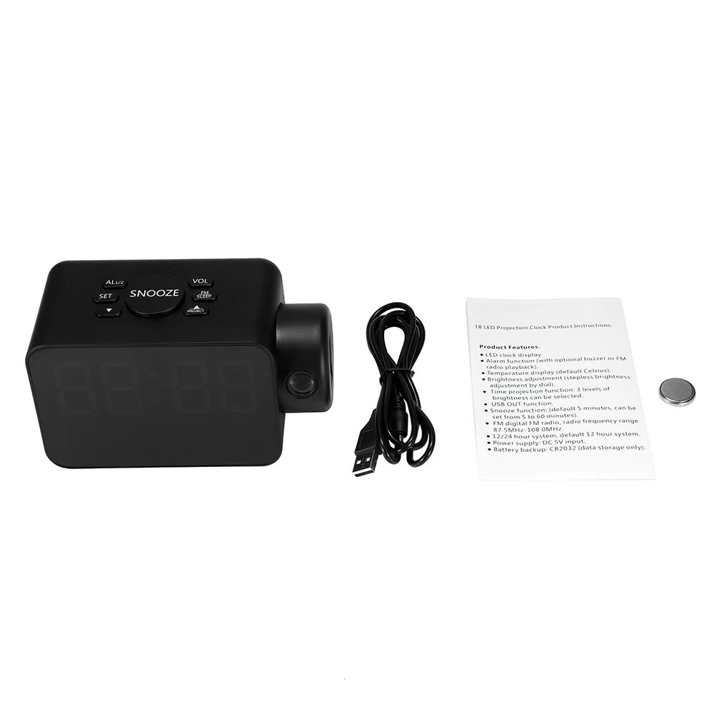 LED Digital Projection Alarm Clock FM Radio Projector Wall Clock Snooze USB Timer Wake Up Clock with Temperature Home Decor