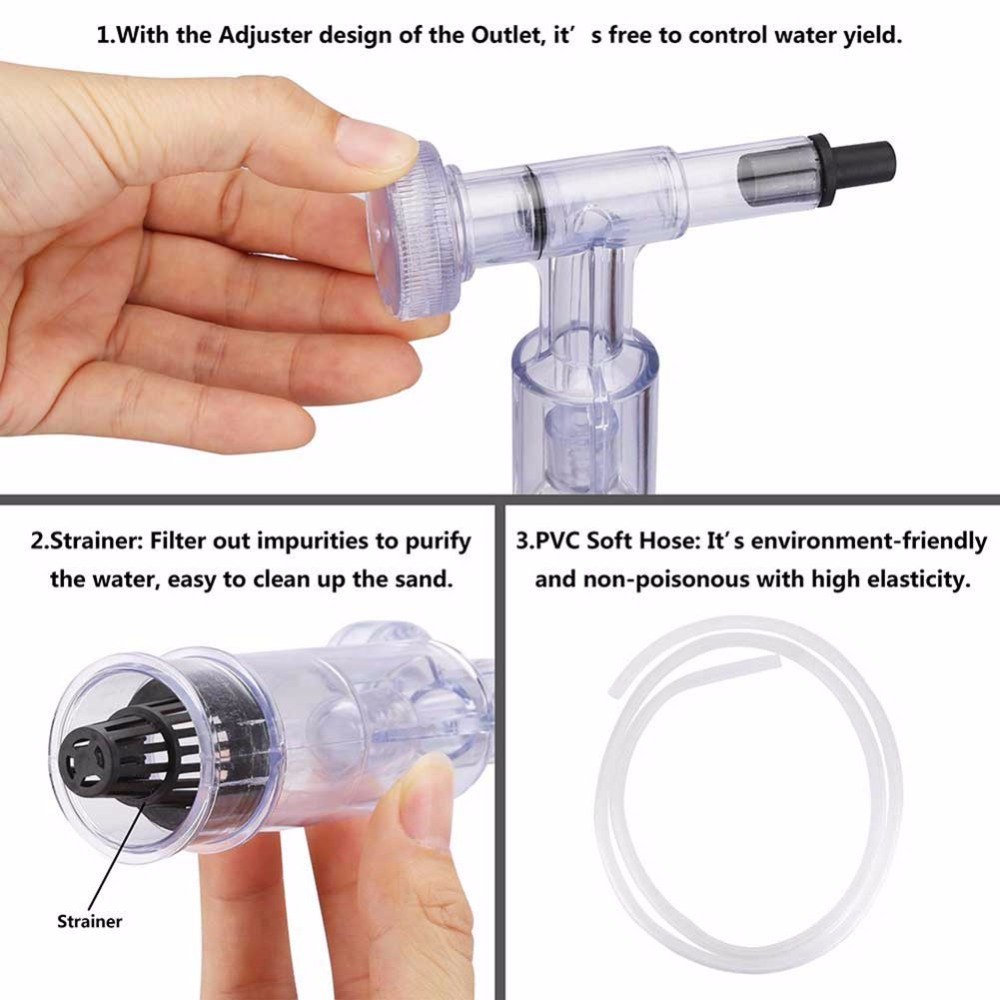 ▲ EASY TO USE:1. Just shake up and down to start 2. Siphons out wastes in the gravel 3. Equipped with flow adjuster. Nicrew Aquarium Gravel Washer is perfect for cleaning up your (7"-19.28" height) aquarium.