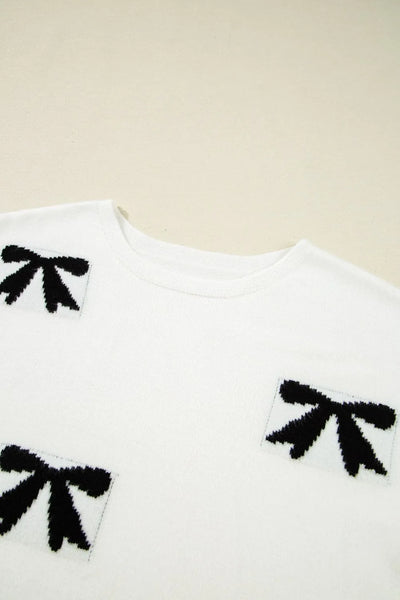 Bow Pattern Knit Short Sleeve Sweater