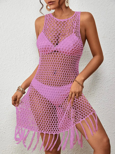 Tassel Hem Hollow Out Sleeveless Cover Up