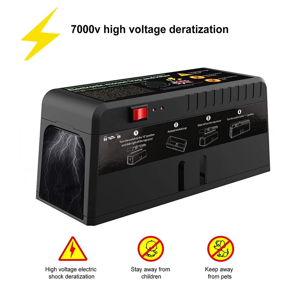 Electronic Mouse Trap 7000V High Voltage Rat Rodent Cage Trap Reusable Mice Killer Orchard Garden Electronic Pest Control Tool