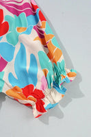 Floral Bubble Sleeve V Neck Tiered Ruffle Babydoll Dress